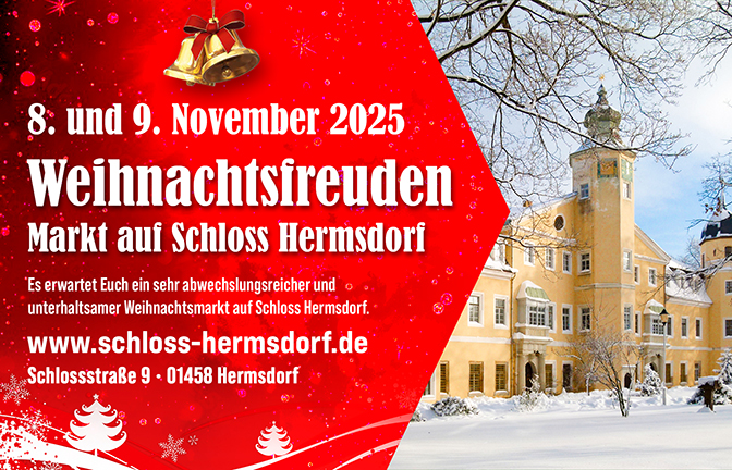 Am 8. und 9.11. findet wieder der 1. sächsische Weihnachtsmarkt in diesem Jahr auf Schloß Hermsdorf statt und wir dürfen uns dort wieder presentieren.